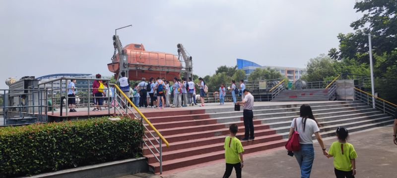 活动中,同学们参观了航海仿真训练中心、航海技能实训中心和船舶模型展览馆等场馆,刘昌华老师现场讲述了模拟航海之旅,同学们亲手操纵航海模拟器,体验了感受海洋风平浪静时的壮阔美丽和狂风暴雨时惊涛骇浪的场景,增强了孩子们探索海洋奥秘的兴趣和渴望。刘永泽老师为同学们生动地讲解了航海文化、航海救护知识讲解,并带领他们现场观摩了具体实操。王滢老师向小朋友们普及了各类船舶常识,介绍了船舶建造过程和新船下水方法等知识。