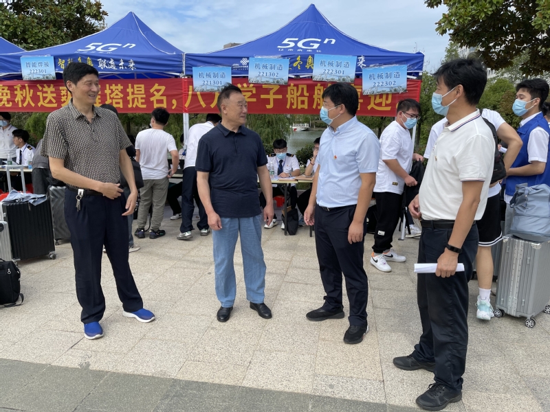 在迎新现场,校关工委一行到学校迎新接待点了解新生情况,并与二级学院领导进行工作交流。在报到现场,老同志与新生亲切交谈,向他们介绍关工委工作和学校专业发展情况,希望同学们尽快适应新的学习生活和环境,树立人生目标,勤奋学习,在大学期间为实现自己的理想打下坚实基础。