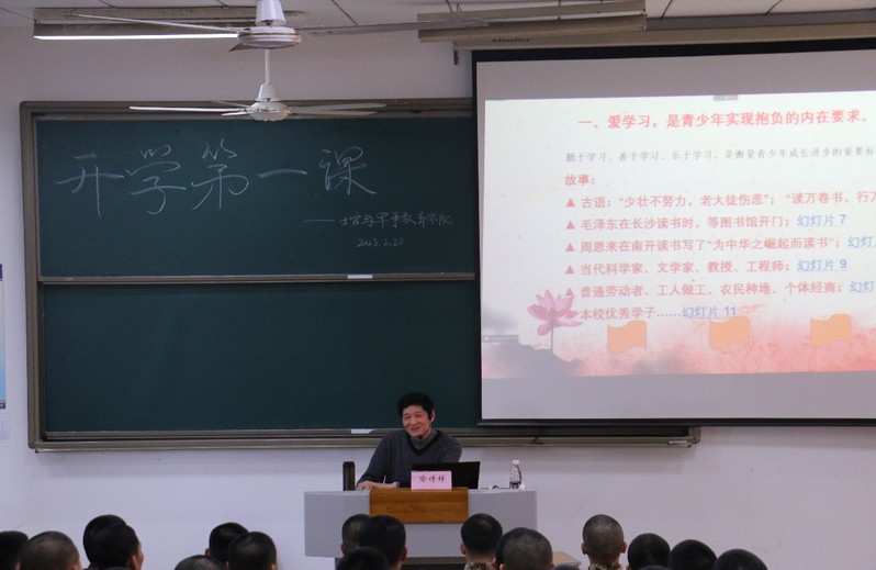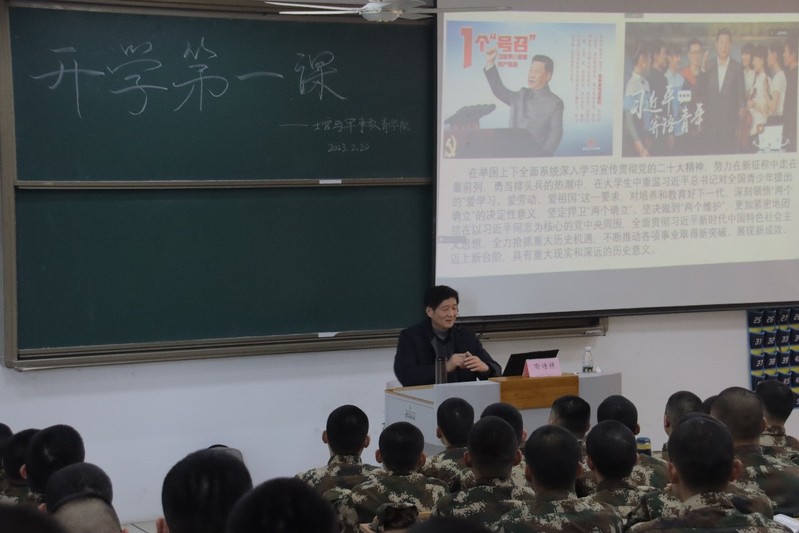 2月20日下午,应士官与军事教育学院邀请,我校关工委副秘书长喻诗祥积极参与学校新学期“开学第一课”主题教育活动,通过线上线下结合的方式,为士官学院全体学生讲授“铸就担当者 奋进新征程”的主题教育讲座。