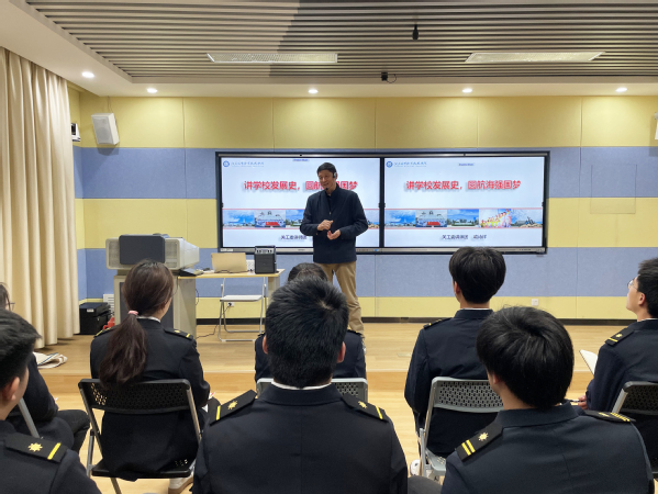 喻诗祥老师首先从学校建校的历史入手,带领同学们从1870年开始,重新认识学校的历史。他用一个个生动的故事,告诉同学们新中国第一所海员学校开班、扩建、合并中的种种不易。