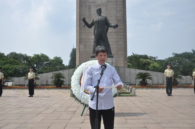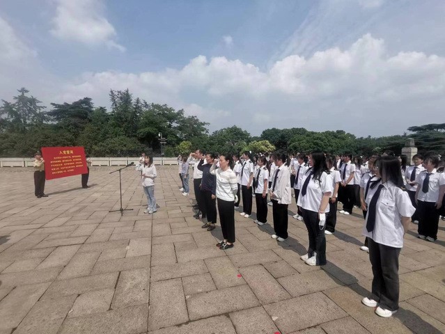 在雨花台烈士纪念碑前,全体师生庄严肃立,为雨花英烈敬献鲜花,寄托哀思,深切缅怀为民族解放、国家富强和人民幸福英勇献身的革命烈士。