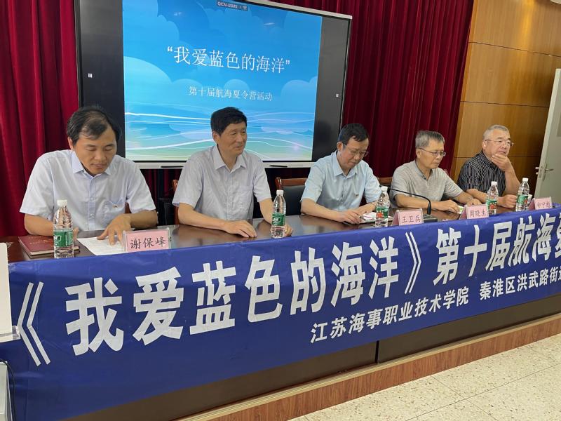 7月5日,在航海技术学院、继续教育学院等二级学院的大力支持下,“我爱蓝色的海洋”第十届航海夏令营活动仪式在海鸿楼301举行,校关工委常务副主任王卫兵、副秘书长喻诗祥、宋昇以及洪武路街道关工委常务副主任周晓生、棉鞋营社区主任申宁彪出席了欢迎仪式,来自南京市慧园街小学以及棉鞋营社区50名师生参加了此次“走近深蓝,探索海洋”为主题的夏令营活动。活动仪式由航海学院党总支副书记谢保峰主持。
