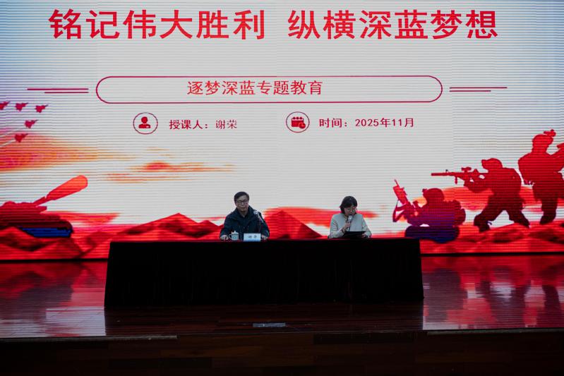 依据《江苏省高校关工委融入“一站式”学生社区开展“五老五助力”行动工作方案》的要求,进一步发挥老同志的政治优势、威望优势、经验优势、时空优势、亲情优势。2025年11月10日下午,我校船舶学院关工委常务副主任谢荣教授在体育馆开展以“铭记伟大胜利 纵横深蓝梦想”为主题的新生入党启蒙教育报告会。此次报告紧扣抗战精神内核与新时代发展要求,为青年学子上了一堂深刻的理想信念教育课。2025级全体新生、学生工作党支部党员师生一同参加了学习。